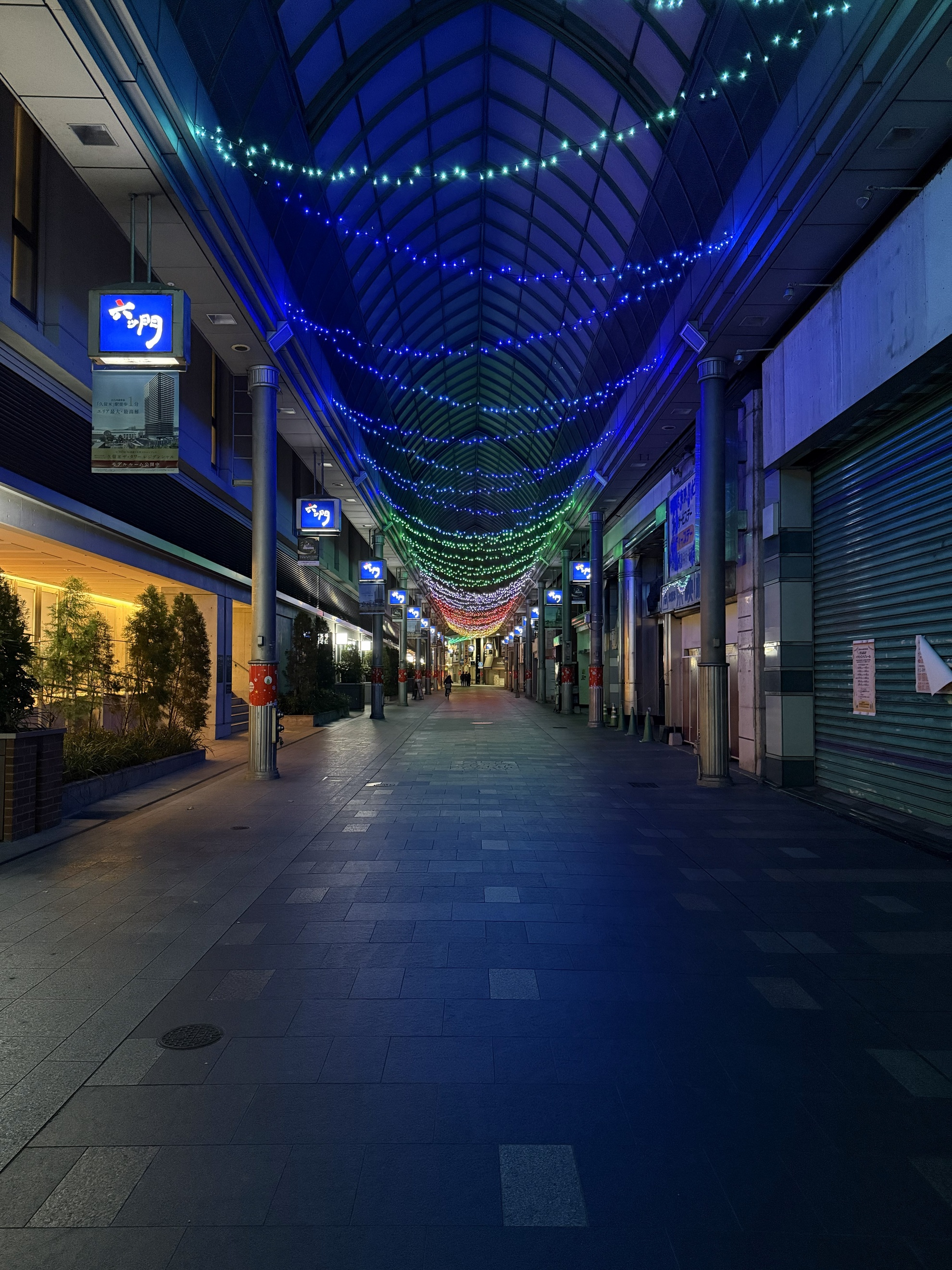 六ツ門テラス(久留米シティプラザ)には大きなツリーがあり、冬の街並みに彩りを添えています。